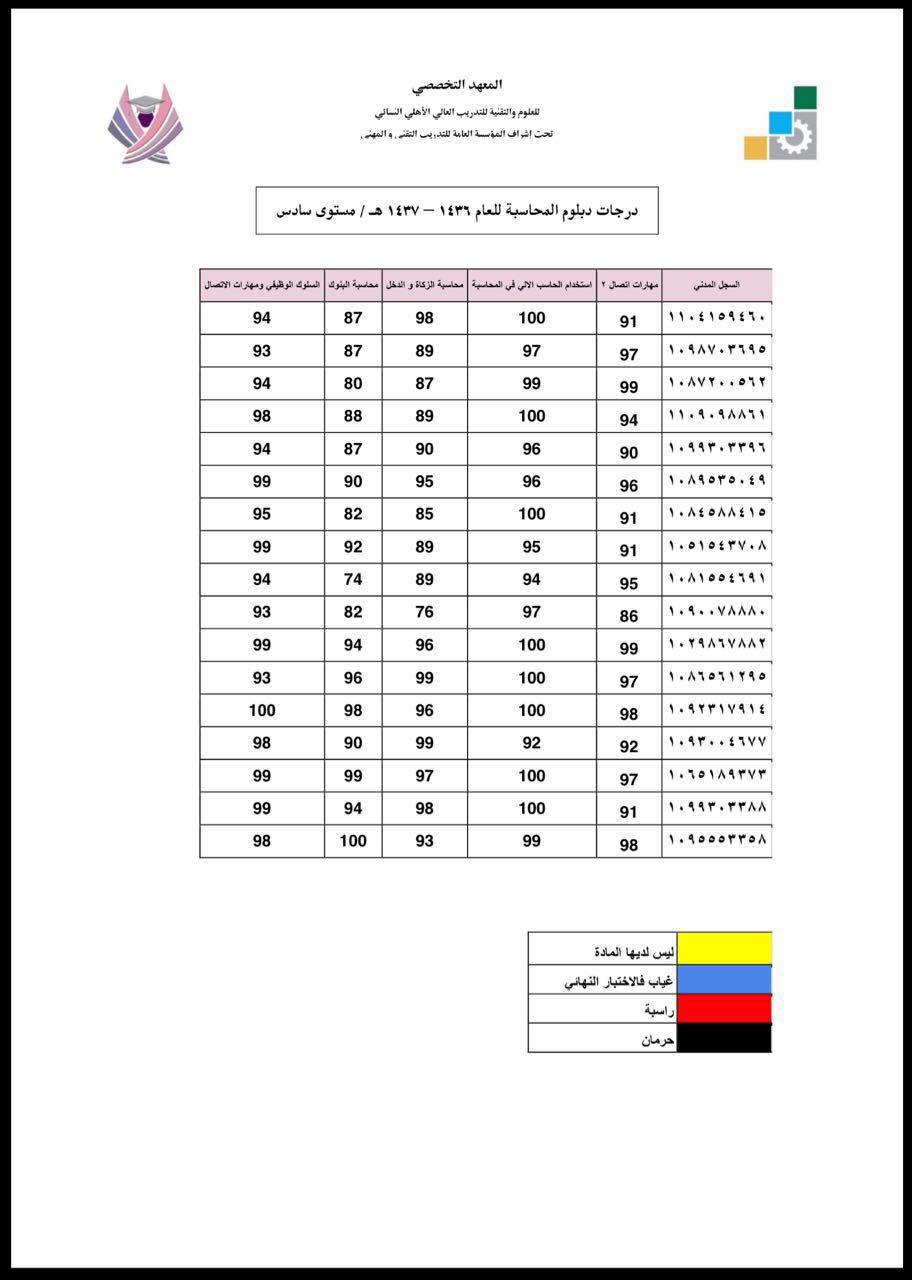 المعهد التخصصي للعلوم والتقنية نتائج المستوى السادس تخصص محاسبة